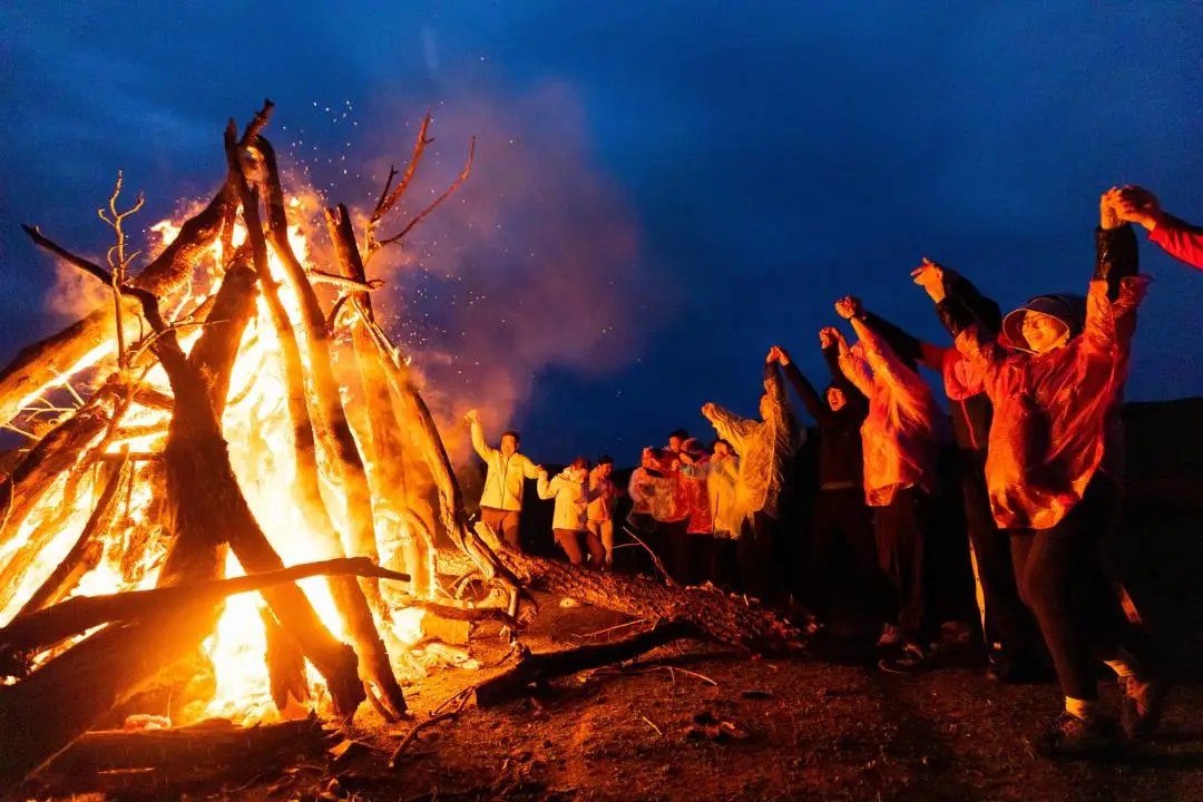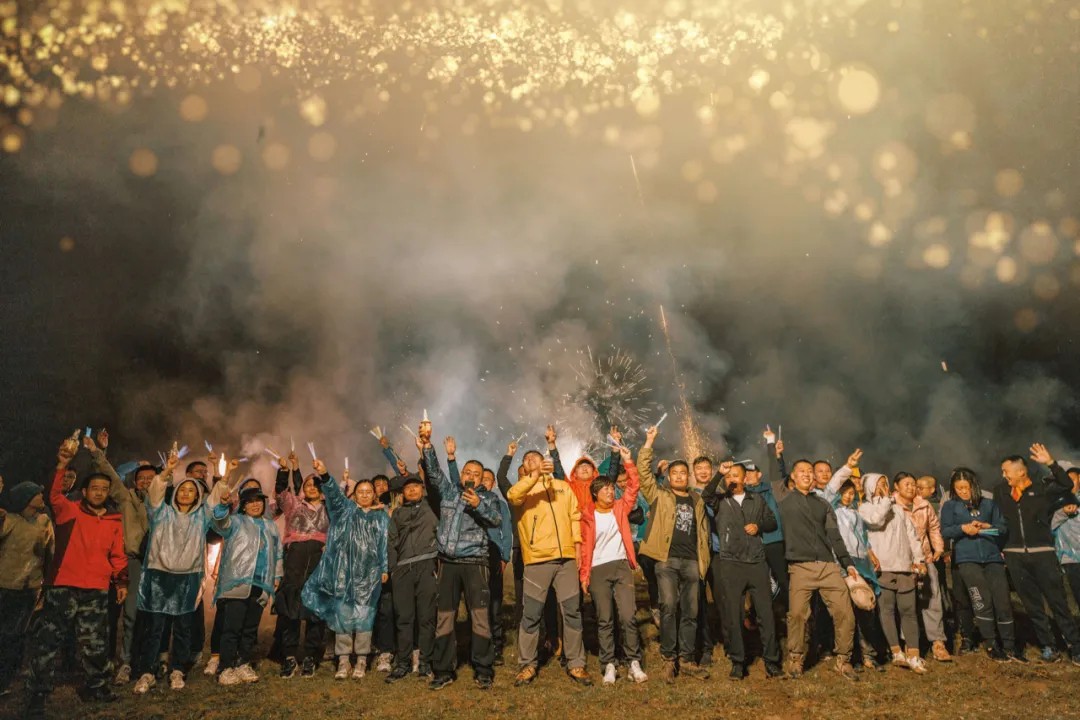 夕阳西下,帐篷为营,青山为伴,与大自然为邻,就着夜色朦胧,篝火炽盛,卸去白日的疲惫,共赏一场烟花盛典,是绚丽、是绽放,是烟火与细雨的较量。